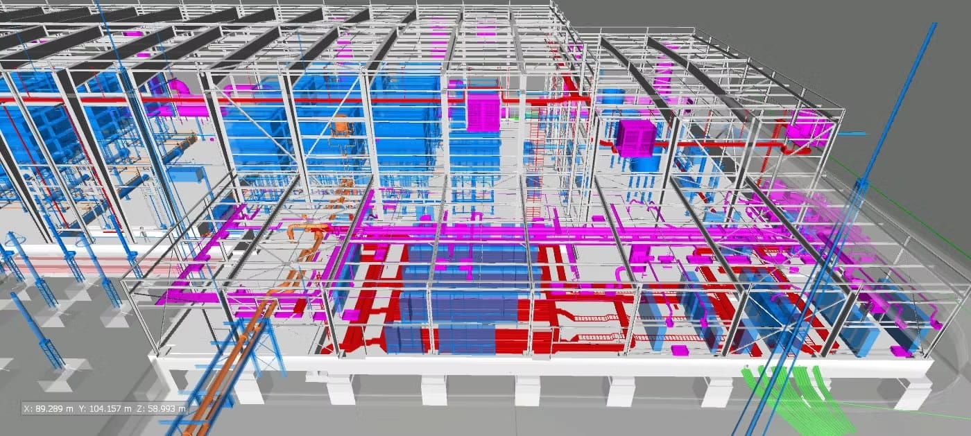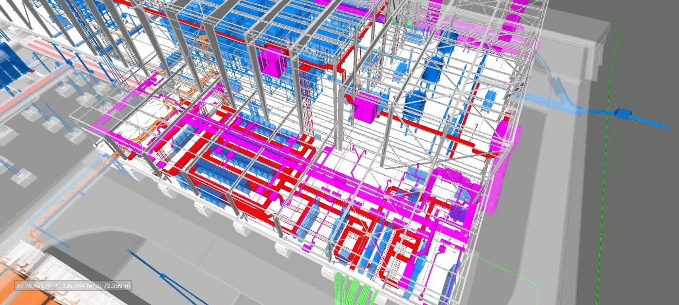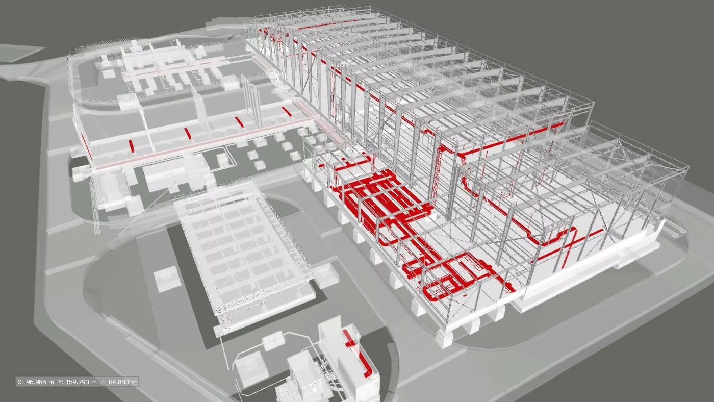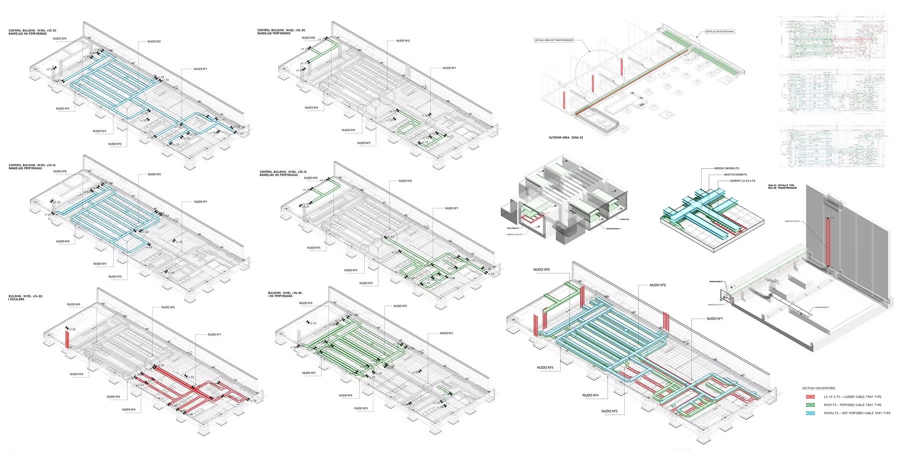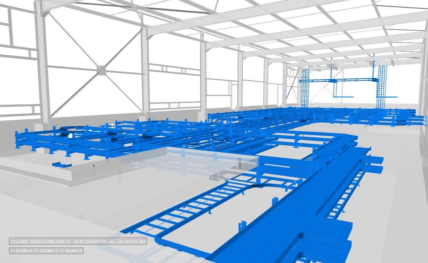 El alcance del proyecto ha abarcado el desarrollo de la documentación gráfica detallada requerida por SIEMENS en fase de construcción para la aprobación del montaje de la instalación. Para ello, se ha desarrollado el modelo de dicha instalación, tanto de bandejas como de los soportes correspondientes, el cual se ha coordinado con el resto de elementos (suelos técnicos, estructuras, entre otras instalaciones) para evitar colisiones y resolver posibles conflictos antes de la puesta en obra.