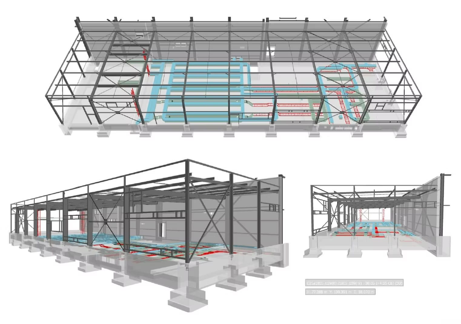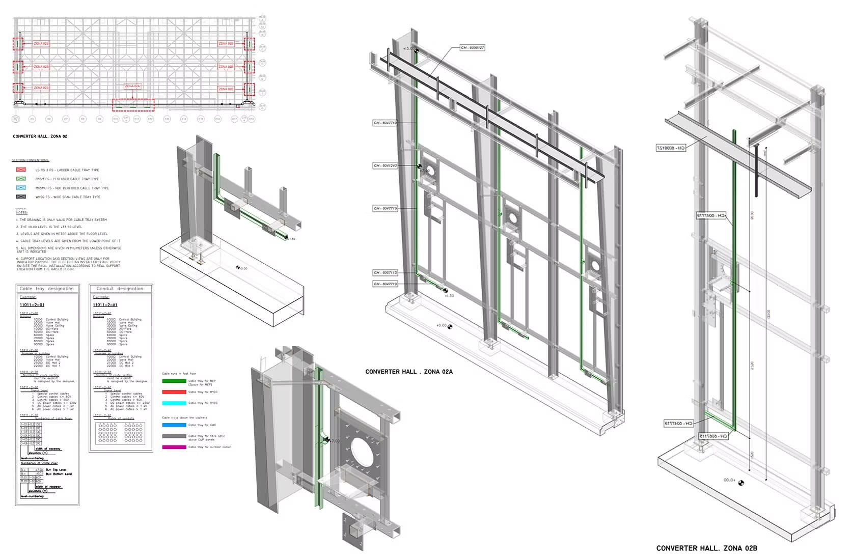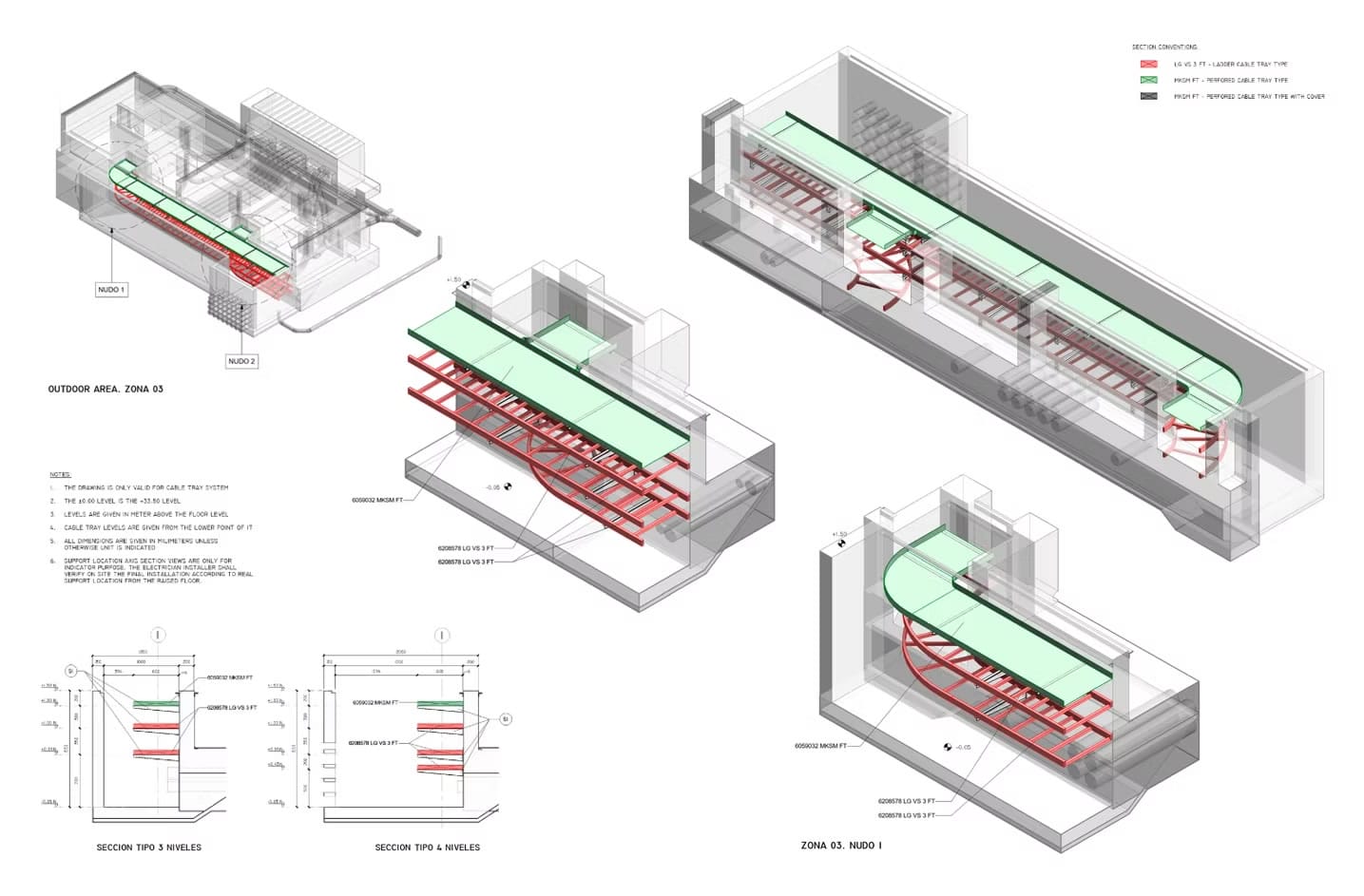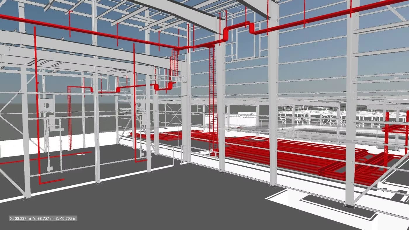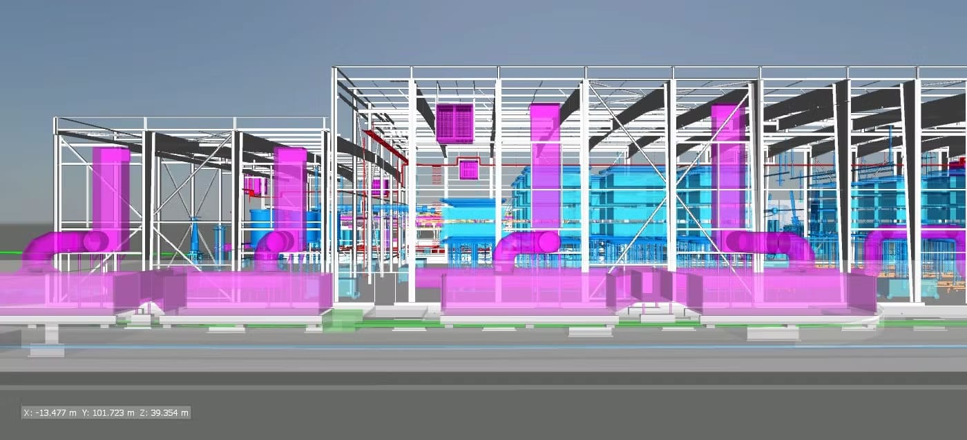 El alcance del proyecto ha abarcado el desarrollo de la documentación gráfica detallada requerida por SIEMENS en fase de construcción para la aprobación del montaje de la instalación. Para ello, se ha desarrollado el modelo de dicha instalación, tanto de bandejas como de los soportes correspondientes, el cual se ha coordinado con el resto de elementos (suelos técnicos, estructuras, entre otras instalaciones) para evitar colisiones y resolver posibles conflictos antes de la puesta en obra.