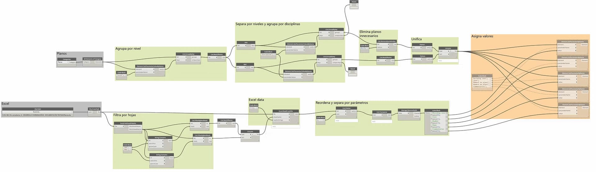 El proyecto finaliza con la entrega de los modelos de Coordinación y la publicación de Planos por Nivel, Disciplina, Clasificación de Sistemas y Cajas de Referencia, automatizando los procesos repetitivos de generación de vistas para planos con scripts de Dynamo.